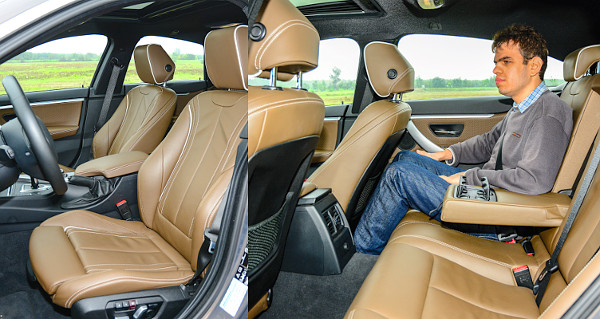 Mintha a vezető köré öntötték volna, olyan frappánsan vegyíti a vezetési élményt az utazási komforttal. Sokat elárul az érzés, amikor éppen fülig ér a szánk egy szerpentinen, családunk meg a hátul is kagylós üléseknek, vagy a finom rugózásnak tapsol. Pedig utasként több kihívást is tartogat a Gran Coupé: hátul szűkös a fejtér, nehézkes a beszállás, de a nagyobb termetűek elöl ülve is hasonló élményeket szerezhetnek. Passzentos méreteinek csak a sofőr örül, akinek a régi iskola szerint rövid műszerfal, meredek A oszlopok és érzékeny kezelhetőség jutnak, kihozva a maximumot a BMW-érzésből. Az úthoz mágnesként tapadó futóműnek ugyan besegít az összkerékhajtás, de száraz úton vezetve szinte lehetetlen észrevenni a különbséget, olyan stabil a felfüggesztés és éber a menetstabilizáló elektronika. Mintha az összes gombot és kapcsolót úgy helyezték volna el, hogy akár élénk manőverezés közben is biztosan kezelhessük, ebben az elegánsan a szélvédőre vetítő kijelző is társunk.