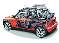 Az autó poénja természetesen a két fázisban nyitható, teljesen automatikus mozgatómechanikájú vászontető. Az úgynevezett alapmenü a harmonikaszerű napfénytető (Sunroof), amely 40 centis sínen hátracsúszva teszi szabaddá az elöl ülők felett a kilátást, s nem mellékesen egészen 120 kilométeres tempóig nyitható és zárható. A tető teljes eltüntetéséhez egy további gombnyomás szükséges, ekkor az oldalablakok lecsúsznak, a ‘Z’ csuklómechanikás szerkezet pedig 15 másodperc alatt lehajtogatja a fűthető hátsó szélvédő üveget tartalmazó vásznat. Manuális beavatkozásra csupán a bukóajtós csomagtér kisebb átalakításához van szükség. A poggyásztér űrtartalma a tető zárt állapotában 165 literes lehet, ehhez csupán a kalaptartót kell kipattintani a helyéről, majd a kb. 10 centivel magasabb állásba kell helyezni. A tető nyitásakor vissza kell helyezni az eredeti pozícióba, a hátracsukló szerkezet ugyanis éppen ebbe az üregbe ül bele. A csomagtér befogadóképessége így 45 literrel kisebb.