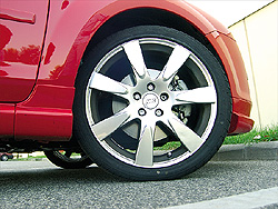 Ez már igen! Nálam az MS Design optikai készletével felvértezett Ford Focus „emlékezetkiesést” idézett elő. Mármint képes voltam elfeledni neki, hogy – a maga idejében igencsak újszerűnek számító – elődjéhez képest a második nemzedék formaterve kimondottan visszafogottra, már-már konzervatívra sikerült. A kompakt kék-ovál megjelenése ugyanis utcahosszal sportosabb, miután átesett az osztrák tuningműhely kezelésén. Az első és hátsó kötényekre látványos kiegészítő spoiler került, melyek a küszöbtoldatokkal együtt alacsonyabbnak és masszívabbnak mutatják az autót. Remekül állnak a hétküllős, 18 colos könnyűfém keréktárcsák is a Focusnak, ha pedig a kliens kérésére (rövidebb rugók alkalmazásával) mélyebbre engedik a kasztnit, még lendületesebb az összhatás – ezt a műveletet tesztautónkon nem végezték el. Hátul duplacsövű kipufogócsonk és a tető végére helyezett légterelő