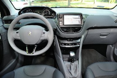 Több szempontból is érdekfeszítő, franciásan különc a vezetőhely. Először is van egy remek fogású, sportosan kicsi (35 cm-es átmérő) multifunkciós kormányunk, a műszereket azonban nem ezen keresztül, hanem felette látjuk. Az egyetlen pici probléma, hogy a vezető magasságától és az üléspozíciótól függően a volán teteje kisebb-nagyobb mértékben kitakarhatja az órákat. Pedig maga a műszeregység határozottan tetszetős, s amikor nem süt rá a nap, gyorsan le is olvasható. Egyébként az áttekinthetőséget javítja, hogy gombok helyett a legtöbb funkció a középkonzol tetején trónoló, 7 colos érintőképernyőről elérhető – igaz, ez csak a legmagasabb, Allure szinten széria. Mivel a tesztautót bőkárpitozással, panoráma-üvegtetővel, miegyébbel is felszerelték, a minőségérzet igen megnyerő, valódi kis ékszerdoboz benyomását kelti a 208-as.