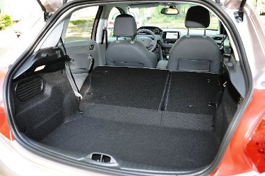 A kiskategória aktuális trendjének megfelelően elődjéhez viszonyítva minden dimenzióban összement (hossz.: -83 mm, szél.: -9 mm, mag.: -12 mm) és átlagosan 110 kilóval karcsúbb is a kocsi, ami dinamikájára és gazdaságosságára nézve egyaránt előnyös. Ehhez képest az utastér és a csomagtartó nemhogy kisebbé, de még szellősebbé is vált! Akár négy csinos hölgy plusz egy csivava is kényelmesen elfér az autóban – mivel az első üléstámlák hátfalát alaposan kimélyítették, a hátsó utasok térdhelye 5 centivel nagyobb! A jó alakú és igényesen kárpitozott poggyásztér alaphelyzetben 295 literes, ami a 60:40 osztású támlák ledöntésével (csak a második felszereltségi szinttől) egyszerűen bővíthető ugyan, de ezután a padló erősen emelkedik.