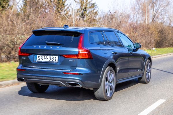 A mai középkategóriások mezőnyében óriásinak számító, 71 literes tank mellett a plusz 40 Nm-es rásegítésű, 48 voltos lágyhibrid rendszer is jót tesz a hatótávolságnak, ugyanakkor utóbbi működéséből csak annyit vesz észre a sofőr, hogy a startstop funkció működése sokkal finomabb, mint korábban. A 197 lóerős, 2,0 literes dízel hangja az egyetlen, ami nem illik az összképbe, a német konkurensek jobban becsomagolják ezeket a négyhengereseket. Miközben a 8 fokozatú váltó tökéletes harmóniában dolgozik a motorral, a dinamikára sem lehet panasz, öt személlyel, az 500 kilós terhelhetőséget kihasználva is marad annyi tartalék, ami egy ilyen kaliberű autótól elvárható. Pedig a V60 Cross Country minden, csak nem könnyű, az 1854 kg-os tömeg a kategória nehezebbjei közé sorolja. Ennek megfelelően távol áll tőle a sportos viselkedés, de azt is meg kell hagyni, hogy a szabadidő-autós köntösbe bújtatott Cross Country sokkal lágyabban rugózik a sima V60-asnál. Miközben az utastér komfortja és az ülések kialakítása is elsőrangú, a csomagtérbe sem lehet belekötni. Az 529 literes érték nem kiemelkedő, de sarkos kialakítása miatt jól pakolható – ez igazi kombi és nem shooting brake!