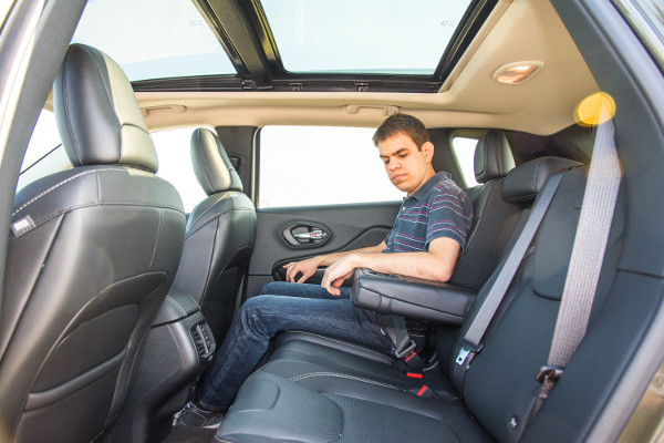 Rengeteg a hely a második sorban, magasan van az ülés a padlóhoz képest, kényelmes a könyöklő A félreértések elkerülése végett muszáj megjegyezni, hogy az egyik legfejlettebb összkerékhajtási rendszer dolgozik a Jeep Cherokee alatt. Az Active Drive I-es két darab, elektronikusan vezérelt többtárcsás tengelykapcsolót is tartalmaz, hogy a kardántengely se forogjon, ha nem szükséges. Auto állásban akkor küld hátra nyomatékot a rendszer, ha az első kerekek megpördülését észleli – érezhetően nagy a reakcióidő azáltal, hogy először a hátsó tengelykapcsolót zárja az elektronika, hogy forogni kezdjen a kardántengely, s így az első tengelykapcsoló zárásakor kisebb legyen az igénybevétele. Sport állásban 40:60 arányban, Snow (hó) állásban 60:40 arányban osztja el a nyomatékot az első/hátsó tengely között, a Sand/Mud (homok/sár) fokozatba tekerve a forgókapcsolót akár a teljes motornyomatékot képes a hátsó tengelyre irányítani a rendszer. Fékezéses differenciálzárak is vannak a fedélzeten. Az Active Drive II-es ennél egy terepfokozattal, az Active Drive Lock pedig terepfokozattal és mechanikus önzáró hátsó differenciálművel tud többet. Szóval a technika megvan, ami nincs, az a hasmagasság vagy épp a bütykös gumi – ezeket a Trailhawk változat tudja, ami csak benzinmotorral választható.
