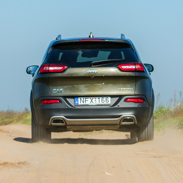 Praktikus rögzítési lehetőségeket kínál a Cherokee, a raktérből 77 liter a padló alatt rejtőzik. A hátsó üléssel nyerhetünk még pár litert az ülőhelyek megtartása mellett Tesztünknek épp a dízelmotor adja az apropóját, a 2014 februárjában bejelentett 2,0 literes gázolajost nyugdíjazta a 2,2 literes változat. Ez nagyobb befecskendezési nyomással (1600 helyett 2000 bar), változó szállítási kapacitású olajpumpával, +10% lökettérfogattal és kiegyenlítő tengellyel licitál rá elődjére, alacsony fordulatszám-tartományban pedig magasabb a nyomatéka. Ebből nem sokat lehet érezni azon egyszerű oknál fogva, hogy alapfelszerelés a 9 fokozatú automatikus váltó, így mindig optimális fordulaton üzemel a négyhengeres. Hidegen hallhatóan morgós az új dízel, egyébként finom a működése, a váltó is egészen fürgén engedelmeskedik a jobb láb parancsainak, meglepő módon a kézi beavatkozást már nem szereti. Motorfék miatt se kell belenyúlni a működésbe, lejtőn elég egy kis fékezés, a váltó visszakapcsol és nem gyorsul be a lejtőn haladó Cherokee. Amíg a kormányzás a műfajnak megfelelően érzéketlen, a felfüggesztés hangolását nagyon jól eltalálták: kényelmes a gördülés, jól fordul az autó normál mértékű oldaldőléssel. Mindenféle elektronikus segéd itt van a fedélzeten, amit csak el lehet képzelni, ezek hangolásánál bizonyos esetekben lehetne még finomítani. A holttérfigyelő minduntalan csipog, ha körforgalomból kihajtás előtt indexelünk és van mögöttünk egy autó, más gyártóknál meg tudták oldani, hogy ez ne jelentsen problémát. Az is szokatlan, hogy a kormányt aktívan elfordító sávtartó segéd akár egy percig ide-oda pingpongozik az autóval a sáv határai között (még a felfestést nélkülöző magyar utakon is egészen jól felismeri a határokat), mielőtt felszólítja a sofőrt, lesz szíves rátenni a kezét a kormányra; van, ahol már egy kormánykorrekció után jön a figyelmeztetés, itt 6-8 alkalomig türelmes az elektronika.