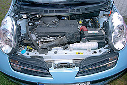 Felettébb kellemes csalódás az 1,2 literes, 65 lóerős alapmotor! Ezzel valódi városi vagány a Micra. A négyhengeres lendületesen pörög fel, a kocsi szaporán gyorsít a lámpáktól. Méreteinek betudhatóan az apró Nissan remekül manőverezhető, kihasználhatjuk a forgalomban keletkező réseket, a kis fordulókörnek köszönhetően pedig szűkebb helyeken sem okoz gondot a parkolás. A kormányzás könnyed, az ötfokozatú sebességváltó kicsit karcosan, de ettől eltekintve jól kapcsolható, és rossz minőségű úton is kényelmes az autó. Csupán a nagyobb keresztbordák és kátyúk viselik meg a lágy hangolású futóművet. A 160SR városban nem igazán tudja érvényre juttatni erőfölényét. Sportos autózáshoz kíméletlenül meg kell hajtani a 110 lóerős gépet, mert csak 4000-es fordulat felett dolgozik teljes erőbedobással. Előtte sem vérszegény, de innentől még jobban rákapcsol. Játszi könnyedséggel lódítja meg az egytonnás kocsit, és kevesebb mint tíz másodperc alatt sprintel vele százra. Persze, nem is az 1,6 literes motorban van a hiba. Sokkal inkább a futóműben: valamelyest leültették a Micrát, elöl 20 százalékkal keményebb rugókat és vastagabb kanyarstabilizátort alkalmaztak, míg hátul 55 százalékkal növelték a csatolt lengőkar merevségét és 10 százalékkal feszesebbek a rugók. Ami azt illeti, a csapnivaló budapesti aszfalton elég rázós élmény a kocsi vezetése, kanyarban például a kisebb úthibákról is elpattog a hátulja.