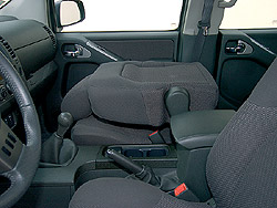 tízlemezes CD-váltót is kérhet a kliens. Az utasfülke rugalmasan variálható. Amikor a 60/40 arányban osztott második üléssorra (vagy egy részére) nincs szükség, befoghatjuk csomagtartónak: a háttámlák ledönthetők, az ülőlapok felhajthatók, sőt, az első utasülés támláját is előre lehet buktatni. Ráadásul a kategória egyik legkényelmesebb járgánya a Navara! A független első, kettős keresztlengőkaros, csavarrugós felfüggesztés ügyesen vasalja ki a kisebb-nagyobb gödröket, úthullámokat, a mindennapok során is elviselhető rugózási komfortot biztosít. Azért ne legyenek illúzióink, a pick-upokra jellemző „hátulütők” igazak a Nissan masinájára is. Nevezetesen a laprugós hátsó rész terheletlenül pattog az úthibákon, esős időben pedig a hátsó kerekek nehezen tudják átvinni a hajtóerőt a talajra. Ezért kanyarban elforognak, és – kipörgésgátló illetve menetstabilizáló rendszer híján – könnyen megindul az autó hátulja. A összkerékhajtást csak földúton vagy havon ajánlott bekapcsolni.