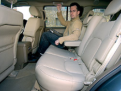 akár egy luxuslimuzinban. A legmagasabb, LE specifikációnál a felszereltség is ehhez méltó: az utasok biztonságát egyebek mellett bi-xenon fényszóró, menetstabilizáló rendszer, valamint az utastér teljes hosszán végighúzódó függönylégzsák szavatolja, míg kényelmüket kulcs nélküli nyitás és indítás, kétzónás légkondicionáló rendszer (a hátsó utasoknak külön szabályozhatósággal), automatikus világításkapcsolás, esőérzékelős ablaktörlő, sebességtartó automatika, hat hangszórós audioberendezés (hatlemezes CD-váltóval és kazettás magnóval), napfénytető, továbbá motorosan állítható, memóriafunkciós bőrülések szolgálják. Egy jó tanács a végére: ha alkalmanként terepjárásra is használjuk a Pathfindert, érdemesebb a kevésbé kényes sötét kárpitozással választani.