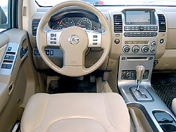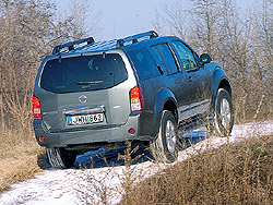 Műúton természetesen a Pathfinder vezetése is olyan, mint bármelyik terepjáróé: habár elöl-hátul független, kettős keresztlengőkaros felfüggesztéseket kapott, alvázas felépítése miatt mégis esetlenül lépi át az úthibákat, kanyarban például pattog rajtuk a hátulja – ugyanakkor egy méretes kátyúba hajtva nem kapunk szívinfarktust amiatt, hogy mindjárt kiszakad a futómű. Magabiztossá tesz az üléspozíció, hiszen jól rálátunk a forgalomra, de a magas felépítés miatt indirekt a kormányzás, erősen dől a karosszéria, s fékezéskor bólogat az autó.