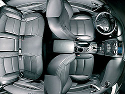 A berendezés praktikus, elég nagy a kesztyűtartó, használható az ajtózseb, van hová tenni az innivalót. A csomagtér ajtaja nem olyan magasra nyílik, hogy aláállhatnánk, de legalább lefejelésmentesen helyezték el a zárat. Az viszont nem jár semmi gyakorlatias előnnyel, hogy a gyújtáskapcsolóba nem kell kulcsot dugni, hiszen egyébként a szokott módon működik. Többre értékelhetjük a magas üléspozíciót, melynek köszönhetően jól látunk a pályán, illetve a pompás tolatókamerát.