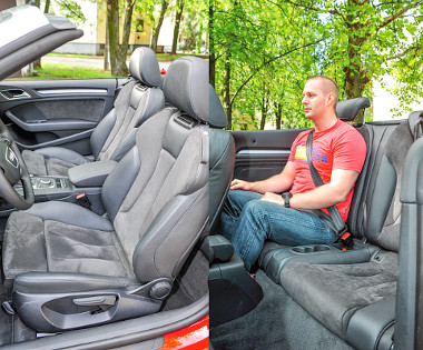 A Győrben készülő A3 Cabriolet szakított elődje kissé sarkos és túlságosan is racionális vonalaival, a stílusos és könnyed, de azért erőt sugalló design nagyon megnyerő. Az A3-as kabinjában négy személy foglalhat helyet viszonylagos kényelemben – nyilván a hátsó sor nem gigászi, de átlagos termetű felnőtteknek megjárja.