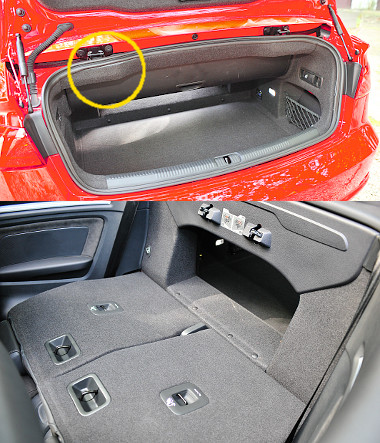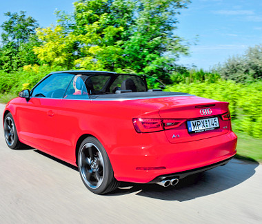 A raktér kupé állapotban 320, míg kabrióként használva 280 literes. A méretével nincs is gond, az elmegy, azonban a zegzugos kialakítás sokat ront a használhatóságán. A támlák a csomagtér oldalfalán elhelyezett karokkal osztva dönthetők, az átrakodó nyílás azonban nagyon szűk. A makulátlan minőségű A3 Cabriolet egyetlen szépséghibáját is a hátsó traktusnál fedeztük fel, a csomagtér felső pereménél a textilborítás és a gumiszigetelés találkozásánál elállt egymástól a két elem. Apróság, tudom, szerviz sem kell hozzá, csak egy ügyes kezű tulaj, de ebben az ársávban ez finoman szólva sem megszokott… Aki divatos A3 Cabrioletre vágyik, annak legalább 8,4 milliót (1.4 TFSI, 125 LE) kell a kereskedésben hagynia, míg a 150-es verzió S tronic váltóval 9,4 milliót kóstál. Persze vannak erősebb aggregátok is: az 1.8 TFSI (180 LE) 9,7, míg a 2.0 TDI (150 LE) 10,5 milliótól kapható, a 300 lóerős S3-as csúcsmodell pedig
