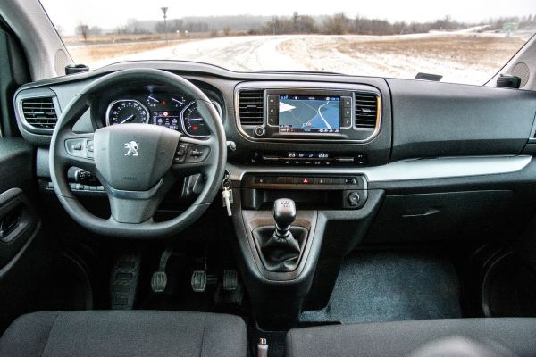 Utasterét is igyekeztek hasznossá tenni, a vezetőfülke tároló rekeszei között osztott, öblös zsebeket, dupla kesztyűtartót találunk, a műszerfal tetején, sőt a dupla első ülés alatt is kialakítottak egy üreget. Pohártartó is van, igaz, csak kettő, azok sem a legjobb helyen: a műszerfal két felső sarkából még a dobozos üditő tartalma is ránk borulhat gyorsításnál. Átgondolatlanok az ajtózsebek is, mert a panel az ülés alá kerül csukott ajtónál, ezért szinte lehetetlen belenyúlni. A4-es papírok tárolására alkalmas az utas előtti, megvilágított felső rekesz, felfelé nyíló fedele azonban képes a kezünkre csapódni nyitás közben. Hasonlóan átgondolatlan ötlet volt a Partner külső tükreit egy az egyben átvenni, mert a sík lapok miatt mindkét oldalon jelentős a holttér, szerencsére a padkát lehet látni parkolásnál, amiben az érintőképernyős rádióval együtt 490 000 Ft-ba kerülő tolatókamera is segít. Beszállásnál jól jönne egy kapaszkodó, de ha már bent ülünk a kormány mögött, jól elhelyezkedhetünk a közepesen kényelmes, kisbuszosan magas ülésben. Kézre áll a könnyedén tekerhető kormány, közel vannak a teherautós kiképzésű, franciásan könnyű váltókar és a pedálok is. A multimédiás funkciókat az érintőképernyőről vagy a kormányról is elérjük, a szellőzésnek szerencsére fizikai gombjai vannak.