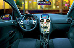 A Corsa D mintegy 16 centiméterrel hosszabb és közel öttel magasabb elődjénél. A három- és ötajtós változat szélessége picit eltér egymástól (+24 mm), így aztán 67 illetve 91 milliméterrel múlják felül a korábbit, miközben a tengelytávolság két centivel nagyobb. A méretnövekedésnek köszönhetően a Corsa utastere valamivel tágasabbá vált, ám mindenekelőtt a tetszetős berendezés és a jelentős minőségi előrelépés tűnik fel. A műszerek és a középkonzol ismerősek lehetnek az Astrából, ami egyben azt is jelenti, hogy a kezelést szokni kell. Mivel az alapmodell kivételével a kormány magasságban és tengelyirányban egyaránt állítható, illetve a vezetőülés magassága is személyre szabható, az ideális üléshelyzet kialakítása gyorsan megy. A belső többféle hangulatú lehet, egyes változatoknál a műszerpult és a kárpitozás például kék vagy piros színben pompázhat, a középkonzol pedig zongorafekete burkolatot kaphat. Mindemellett a praktikum sem szorul háttérbe, az üdítőspalackok az ajtózsebekben és a középalagúton helyezhetők el, magasabb felszereltségnél az utasülés alól fiók húzható ki, továbbá a pénzérméknek, a parkolókártyának és a mobiltelefonnak is találunk megfelelő rekeszt.