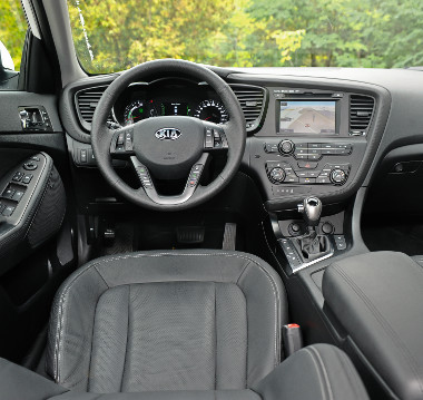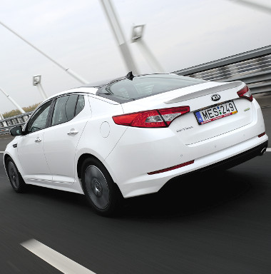 Egyébiránt a hibrid vezérlőegység és az akku szellőzőcsatornáinak áthelyezésével 12 literrel bővült a csomagtartó, s a padló alá teljes értékű pótkerék kerülhetett. Igaz, a 381 literes befogadóképesség így is szerény. Ezt és a szűkös fejteret leszámítva tágas és kényelmes autó az Optima. Ráadásul a hibrid változat kizárólag teljes felszereltséggel kapható, többek között xenon fényszóró, dupla napfénytető, elöl-hátul fűthető bőrülések (a vezetőé szellőztethető is) és kormány, navigáció, tolatókamera, valamint 11 hangszórós, 550 watt teljesítményű Infinity audiorendszer jár hozzá – opcióként egyedül metálfényezés rendelhető.