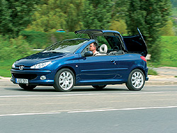 A két rögzítőkar kioldását követően a tető gombnyomásra (10 km/órás sebességig akár menet közben is), 20 másodperc alatt tűnik el a csomagtartóban, ám az ablakokat nyitáskor is, záráskor is utólag kell felhúzni. Jó minőségű úton származásához híven franciás kényelmet nyújt a 206 CC, a kisebb úthibákat „simára vasalja” a futómű, a mifelénk jellemző nagyobbak azonban felfedik a sprőd rugózást.