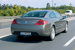 kocsi nehezen érzékelhető mérete sem könnyít meg. Országúton és autópályán viszont kellemes társ a 407 Coupé. Rugalmasságánál fogva bátran előzhetünk és szélsebesen haladhatunk a célunk felé. A 9,0 l/100 km tesztfogyasztással számolva egyetlen tankolással megközelítőleg 730 kilométert tehetünk meg. Leginkább a nyílegyenes, esetleg enyhe kanyarokkal tarkított szakaszokon mozog otthonosan a kocsi. Persze, a szűkebb fordulókat is lendületesen vehetjük, de a vezetés élményét tompítja, hogy állandóan érezni az autó jelentős tömegét. A szélesebb nyomtávnak és a keményebb rugóknak köszönhetően egy ideig határozottan kapaszkodik az orrnehéz Peugeot, majd alulkormányzottá válik, s az eleje kezd lesodródni az ívről. A kormányzás viszonylag direkt, ám alig kapunk információt az útról, míg a pontosan adagolható fékek meggyőzően lassítanak, de kemény igénybevételnél hajlamosak a fáradékonyságra.