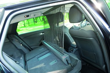 Praktikus a rugalmas rakományrögzítő háló, mely a padlón lévő négy akasztószembe pattintható be. A mély oldalsó vájatban futó csomagtérroló érintésre automatikusan visszacsévélődik a házába, a mögötte található kihúzható térelválasztó pedig a felső bekötési pontokhoz erősítve különíti el egymástól az utas- és csomagteret. Utóbbi 50 000 forintba kerül, és a támlákon kialakított patenteknek köszönhetően a lehajtott ülések hátoldalára is felhelyezhető. Kár, hogy a jobb első ülés támlája nem hajtható a lapjára, így a hosszabb tárgyak szállításakor az ülésdöntésen kívül a sílécalagút vagy a tetőcsomagtartó jelentheti a megoldást.