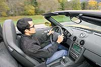 Másfajta örömautózásra is “nyitott” a Boxster. Az időjárás kegyes volt hozzánk, így aztán a késő őszi vényasszonyok nyara lehetőséget adott arra, hogy a roadsterezést is alaposan kiélvezzük. Miután a központi rögzítő kart kioldottuk, a Porsche 50 km/órás sebességig akár menet közben is képes levetni vászontetejét – a művelethez mindössze 12 másodpercre van szüksége. A tóparti úton igazán pazar egy ilyen kellemes, nyitott autóval suhanni. A Cayenne terepjáróból ismert, de közvetlenül az új 911-esből importált vezetési környezet megnyerő, a felhasznált anyagok minősége példaértékű, s az ergonómiára sem lehet panasz. A négyféle ülés közül a legprofibb kivitelnél nem csupán a magasság és az ülőlap dőlésszöge szabályozható, hanem felfújható légpárnákkal az oldaltámasz és a deréktámasz is. Mivel pedig a kormány (ebből három verzió van: normál, sportos és multifunkciós) immár magasságban és tengelyirányban egyaránt állítható, az ideális pozíció megtalálása gyerekjáték. Nem csak kényelemben, hanem biztonságban is érezhetik magukat a Boxster utasai, ugyanis ez az első roadster-kabrió, amelyik speciális fejlégzsákkal is védelmezi a bent ülőket.