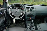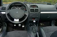 Belül mindkettőben sportülések, alumíniumpedálok és színezett biztonsági övek dobják fel a hangulatot. Érdekes módon mindkét autóban kicsit magasnak tűnik az üléspozíció, annak ellenére, hogy állítható az ülésmagasság, s ugyanez mondható el a kormány helyzetéről is, amely mind a Clióban, mind pedig a Mégane-ban “haszonjárművesen” lapos szögben áll. Az elöl, keresztben elhelyezett erőforrások mindkét autóban az F4R típusú 2 literes, 16 szelepes motorra épülnek, ám a