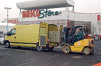 Azt, hogy nem személy-, hanem áruszállítóról van szó, rögtön észrevehetjük a válaszfal előtti és mögötti rész méreteinek arányából. Még jó meredekre állított támlával sem tudom annyira hátratolni a vezetőülést, mint szeretném, aki pedig a kétszemélyes utasülésen a belső helyre szorul, még jobban összehúzhatja magát. Három markos bútorrakodó igencsak intim közelségbe kerül itt egymással. Viszont: dzsekijüket akasztóhorog, táskájukat az ülések mögötti és közötti zug, italukat és elemózsiájukat a lépcső terébe lenyúló öblös ajtózseb, értékeiket zárható kesztyűtartó várja. Van megfelelő hely a menetlevélnek, fontos cetliknek és az írószereknek is. A jármű tartozékai a fülke fölé a raktérből benyúló padláson férnek el. Hátul viszont valóságos hodályba lépünk, majdhogynem röplabdázni lehetne benne. A