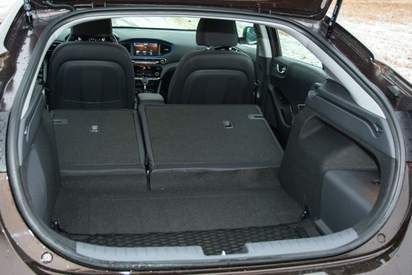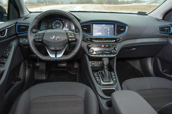 Konzervatív formához visszafogott belső jár: a formák megszokottak, a gombok, kapcsolók és kijelzők más Hyundaiokból ismerősek, csupán a műszeregység visz színt az utastér szó szerint szürke egyhangúságába. Bátran nevezhetjük unalmasnak az összhatást, de el kell ismernünk, hogy az anyagminőség és a precizitás már a Volkswagen konszern gyártmányait idézi. Így használat közben nagyobb megelégedéssel tölti el a vezetőt és utasát, mint egyes japán gyártmányok utastere és kezelőfelületei. E téren sem próbálták meg utánozni a Toyotát. Egészen addig, amíg be nem indítjuk, nem is tűnik fel, milyen technika van alattunk. A helykínálat kompakt mércével átlagos, elöl magasabbak is jól elférnek, és a hirtelen lejtő tető ellenére hátra sem csak gyerekeket ültethetünk. Az akkukat a hátsó ülés alá építették be, ami jót tesz a csomagtartó méretének, de árt a bővíthetőségének, mert a fix hátsó ülőlap miatt nem lesz sík a padló.