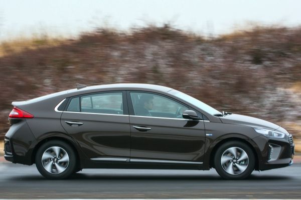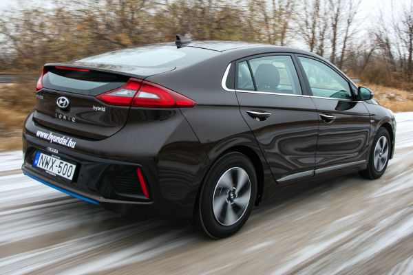 Az elsőként kipróbált változat a hagyományos hibrid rendszerrel nem sok beleszólást enged a működésébe, elektromos módot gombnyomásra nem választhatunk, a rendszer maga dönti el, hogy járjon-e a benzinmotor és csak az akkukat töltse, a kerekeket is hajtsa vagy kapcsoljon le és csak villannyal működjön. Ezt folyamatosan variálja, nehéz pontos ok-okozati összefügést találni a döntéseiben, viszont így akár 90 km/órás tempónál is haladhatunk akkumulátorról, igaz, nem túl sokáig, ezért sem kaphat ez a változat zöld rendszámot. A később érkező konnektoros kivitel 50 km-t tehet majd meg helyi károsanyag-kibocsátás nélkül. Az akkucsomag jelenléte azonban az alap Ioniqben is érzékelhető. Elindulásnál rakétaként lőhetünk ki a lámpától, bár papíron nem kiemelkedő, a valóságban impresszív a gyorsulása, ami a kis tömegnek is köszönhető, és akkor is feltűnően besegít a hajtásba, amikor nagyobb tempóval autózunk vagy sport módban gyorsítunk. Ami a zajszintet illeti, nincs markáns különbség egyik üzemmód között sem, az alapvetően csendes belsőben mindig hallható valamilyen szolid morajlás. A gördülési zajt kevésbé sikerült kiszűrni, a nagy hátsó ajtó felől erősen behallatszik. Bármilyen jók a menettulajdonságai, érezhetően a kényelem lebegett a tervezők szeme előtt, és ez a kettősség végigkíséri az egész koncepciót. Lengéscsillapítása feszes, a karosszéria mégis ringatózik és érezhetően dől a kanyarokban. A hazai utakon ez nem a legszerencsésebb kombináció, az érzéketlen kormányzás, a gázpedál állásától néha független, zúgó motorhang amúgy sem dinamikus, inkább spórolós vezetéshez hozza meg a kedvünket.