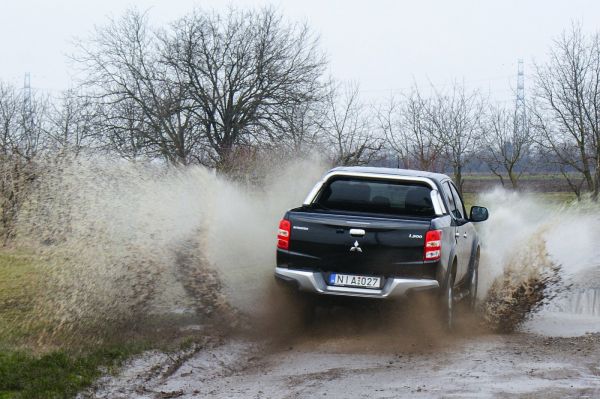 A szervokormány erőszükséglete éppen megfelelő, jól irányítható, nem jellemző rá alulkormányzottság, viszont a karosszéria még gázadásnál is megbillen a magas futómű miatt. Nem kisimítja, hanem kibírja az úthibákat, melyeken pattogva halad át. A 181 lóerős dízelmotor hangja állandóan hallatszik. Hátsókerékhajtással 2000-es fordulat felett kezd zavaróvá válni, összkerékhajtással hamarabb felerősödik a hangja, cserében már kis gázadásra is élénken reagál és bőséges erőtartalékkal rendelkezik. A kézi váltós L200-as kemény kuplunggal, férfias erőt kívánó karral mutatta meg haszonjármű jellegét, amit kiválthatunk a 410 000 Ft-os felárért kínált, ötfokozatú automatikus váltóval. A jól működő szerkezet finoman kapcsol, a kevés fokozat miatt CVT-sen dolgozik, de terepen is megállja a helyét. A 0,6 literes gyári fogyasztási különbséget nem lépte túl, sőt, nálunk 9,1 helyett 9,6 liter lett az átlag.