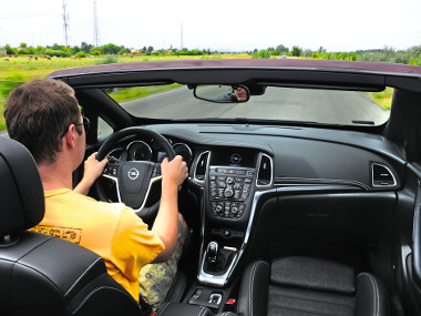 Menet közben a Cascada egyértelműen amolyan komfortkabriónak tűnik, mert hiába a futómű feszességét és a gázreakciót állító „Sport” mód, az 1,7 tonnát is meghaladó tömeg miatt nem lesz a szerpentinek királya. A kormány ugyan közvetlen, ám ez az autó valahogy nem csábít száguldásra. Mondom ezt annak ellenére, hogy a tesztautóban a vadonatúj, szentgotthárdi gyártású, 170 lóerős turbómotor munkálkodott. Az 1,6 literes egység azonban nem a csúcsteljesítménnyel vett le a lábamról, hanem az egyenletes teljesítményleadással. Nagyobb szívómotorokat megszégyenítő a nyomatékgörbéje, s mint valami jó dízelmotornál, egészen alacsony fordulaton is feljebb kapcsolhatunk. Fogyasztása már nem annyira kimagasló, nekünk 9,3 literes fogyasztást sikerült regisztrálni vegyes üzemben. A motor kapcsán azonban az volt a meglepő, hogy a feltöltő hangja nagyon markánsan kivehető. Ritka, amikor a turbó „szuszogása” ennyire hallható, ugyanakkor a járáskultúra nagyon maga szintű – az 1.6 SIDI egység kategóriájának egyetlen kiegyensúlyozó tengelyes aggregátja.