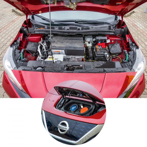 A Hondához hasonlóan itt is a frontrészen, középen van a töltőcsatlakozó, tapasztalataink szerint nyilvános töltőoszlopos energiavételezéshez ez a kialakítás a leginkább praktikus. A Leaf teljesítménye a 218 lóerővel természetesen több mint elegendő, 80 km/óráról is valósággal vágtázik felfelé a sebességmérő mutatója. Ugyanakkor nem jó vele gyorsan menni, a kényelmesre hangolt rugózással a karosszéria oldaldőlése kanyarban jelentős. Bár a felhasznált anyagok minőségétől itt sem fogunk elájulni, funkcionalitásban és helykínálatban a Nissan csomagja a legerősebb.