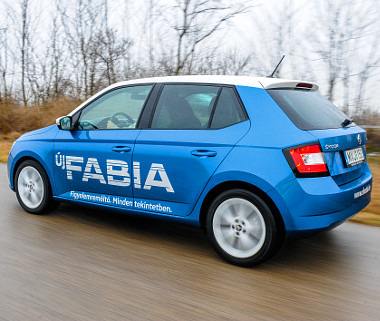Az egyes kezelőszervek működtetése a megszokott módon egyértelmű és könnyű, sajnos ez utóbbi igaz a kormány visszajelzésére is. A felfüggesztés hangolása ha nem is dobálósan kemény, de érezhetően feszes, ehhez jól illene egy sportos visszajelzésű kormányzás is, főleg, hogy jó fogású, alul kiegyenesített karimájú sportkormányt markol a vezető. Vagy ha a másik irányból közelítjük meg a dolgot, miért nem kényelmesebb hangolású a rugózás? A 7 fokozatú dupla kuplungos váltó hajlamos elejteni a fordulatot (Sport fokozatban pedig feleslegesen pörgeti az erőforrást egyenletes tempóval haladva), úgyhogy a 110 lóerőtől csodára nem számíthatunk. A széles fordulatszám-tartományban elérhető 175 Nm-es nyomaték segít a helyzeten, ha nem padlózzuk a gázpedált, akkor visszakapcsolás nélkül finoman gyorsulunk. Kézi beavatkozásra az előválasztó kar pöckölésével van lehetőségünk, de hiába, még így se lehet valódi motorféket előcsalogatni. Nem szép dolog, hogy az autót az elgurulás ellen a fékhatás megtartásával védő menetstabilizáló a motorleállító működése esetén csak nagy ugrással engedi útjára a Fabiát. Megoldás az lehet, hogy a fékről nem azonnal lépünk a gázra, hanem tartunk egy lélegzetvételnyi szünetet. Vegyes használatban 7,7 l/100 km-es tesztfogyasztást mértünk.