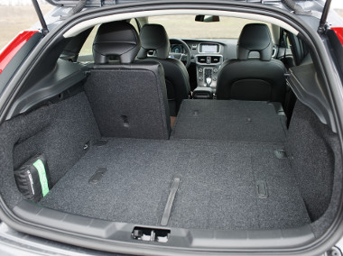 Belül 40 mm-rel magasabb az üléspozíció, de az utastér egyébként megegyezik a normál V40-esével annak minden előnyével és hátrányával együtt. Kellemesek a formák és igényesek az anyagok, modern és hangulatos a berendezés, a digitális műszeregység pedig igazán látványos: háromféle grafika közül választhatjuk ki a nekünk tetszőt, bár a menürendszer azért lehetne gyorsabb is. Mindenesetre a V40-es Cross Country kivitelben sem a térkihasználás bajnoka, hátul elég szűkös a helykínálat, és a csomagtartó mérete is szerény. Viszont az álcapadlóval praktikusan variálható az elosztása, s a 60/40 osztású hátsó támlákon kívül szükség esetén az anyósülésé is ledönthető.