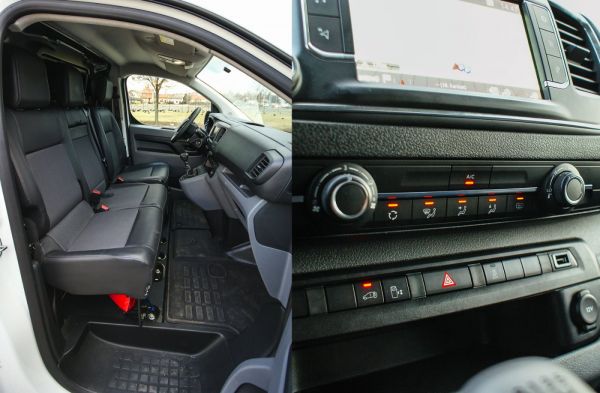 Személyautóban is megállja a helyét a műszerfal, ami így munkahelyként remek. Elég sok tárolóhelyet alakítottak ki a vezető és az utasok keze ügyében, de a középen helyet foglaló lábteréből helyet rabol a váltókar konzolja. Feláras az érintőképernyős fejegység, a szellőzést vezérlő kapcsolók minden esetben ott vannak a középkonzolon, ami megkönnyíti a használatot. Egyik tesztautónál sem sikerült kibékülni a fűtéssel, vagy hideg levegőt fújt be, vagy izzadtunk, a kettő között pedig a digitális kijelző tanúsága szerint csak 1 °C volt a különbség.