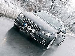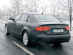 A bámulatos minőség és a technikai “tour de force” persze semmit nem érne akkor, ha az A4-es alapvető műszaki tartalma – a motor és a váltómű – középszerű lenne. De nem az, sőt, mindkét egység nagyszerű! A V6-os, 2,7 literes, 190 lóerőt teljesítő masina már régi darab, de a frissítések jóvoltából még mindig nagyszerűen teljesít, sőt, megfelel a még be sem vezetett Euro 5-ös emissziós normának. Zaja csak hidegindítás után zavaró kicsit, de mivel hathengeres, ez sem nagy baj. Elindulás után aztán hamar meg is feledkezhetünk erről, mert a gyorsulás élménye és a finoman kapcsolgató váltó háttérbe szorítják a gépzajt. A motor legnagyobb erénye így az, hogy a háttérben marad, és tekintélyes nyomatéka révén szinte bármilyen helyzetet magabiztosan megold. Sőt, a 400 newtonméteres nyomaték már-már túlmotorizálttá teszi a másfél tonnás kocsit. Ezt elsősorban azért érezhettük így, mert az elsőkerékhajtás nehezen képes megbirkózni a már 1400-as percenkénti fordulaton leadott csúcsnyomatékkal, s ráadásul az alaphelyzetben fokozatmentes automataként működő, de Sport programban nyolc előre beállított „fokozatot” kapcsolgató Multitronic váltó mindig gondoskodik arról, hogy a motor azonnal rászabadíthassa vonóerejét az első kerekekre. Ha mélyre nyomjuk a gázpedált, a kipörgésgátló és a menetstabilizáló elektronika túlórázhat. A sok fokozat előnye az is, hogy akkor sem nő meg nagyon a fogyasztás, ha az ember nagyon siet az Audival. Mi 9,4 literes átlagot mértünk, de takarékos vezetéssel 8,0 liter alatti érték is elérhető.