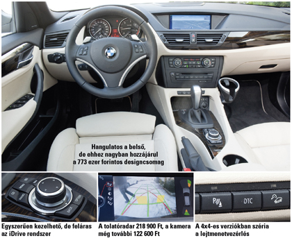 Az 1-es sorozatnál természetesen drágább, a 3-asnál viszont jutányosabb vétel az X1-es, a 143 lóerős, szimpla hátsókerék-hajtású sDrive18d belépőmodell 9 millió forinttól indul, míg az xDrive23d árcéduláján már 11 150 000 forint szerepel. Az alapfelszereltség korrekt, de nem túl nagyvonalú, s amikor rendesen felextrázzák az autót, bizony elég vastagon fog a ceruza: a tesztelt példány 17 milliónál is többe került…