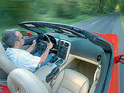 Amikor egy kimerítő nap után kiszállok az autóból, remeg a lábam az izgalomtól, sajog minden porcikám. Mégis, alig várom, hogy másnap reggel legyen, s újra a kormány mögött „kínozhassam” magam. Ez az autó maga az amerikai álom, a Porsche 911-es tengerentúli megfelelője, az élő legenda hatodik nemzedéke. Mégpedig roadster változatban – ha már itt tartunk, a Chevrolet Corvette 1953-ban nyitott sportkocsiként kezdte pályafutását! Aki gyerekkorában játszott autóskártyával, vagy egy kicsit is jártas a négykerekűek világában, az bármilyen szögből, már kilométerekről felismeri a jellegzetes formát. Illetve megeshet, hogy elölről mégsem. Az orr-részen ugyanis drámai változás történt: mivel a bukólámpák (értelemszerűen nyitott állapotban) gyalogosgázolás esetén komoly sérüléseket okozhatnak a szenvedő alanynak, egy jövőbeni előírás miatt le kellett mondani róluk. Szomorú,
