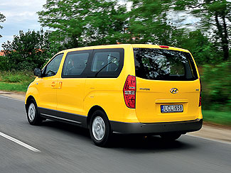 Amikor először elindultam az autóval, kissé mellbe vágott, milyen jól megy, így elégedett mosollyal vettem tudomásul, hogy a legmozgékonyabbak között vagyok az úton. A nyomatékos, rugalmas, 170 lóerős turbódízel motor készségesen veszi a gázt, és főként csak kifelé hangos, belül egészen kulturáltnak érződik az akusztikai körítés. A már említett egyszerűségi stratégia jegyében csak ötfokozatú váltót szerelnek be, de ezzel is nagyon jól lehet haladni, hegyre menni, gyorsítani – igaz, nyolc személlyel, teljes terheléssel nem próbáltam a H-1-est, lehet, hogy akkor jól jött volna valamivel finomabb lépcsőzés. A fogyasztás rendben van, a 75 literes tankkal bő 700 kilométeres hatótáv adódik. A fék, a futómű, a kormány, a világítás, a fedélzeti számítógép mind megfelel a tervezési filozófiának: semmi különös, de jól adja az elvárható szintet, és bárki azonnal tudja használni.