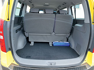 Nemcsak a nagy egészre figyeltek oda a tervezők, hanem a részletekre is. Ennyi embernek sok apró holmija lehet, ezért két kesztyűtartó van az autóban, megduplázták az ajtózsebeket is, no és italtartókban sincs hiány. Navigátort használunk, mobiltelefont töltenénk? Esetleg egyszerre? Tessék, két szivargyújtó van elöl. A magasra felnyíló hátsó ajtó mögött elég hamar ott mered tűzfalként a hátsó ülés, de azért 851 liternyi a csomagtér, fejenként 120 liter jut. Nagy hátránya viszont a H-1 Tour kisbusz változatnak, hogy az a bizonyos tűzfal nem bontható le, azaz nem variálható az utas- és csomagtér. Ami persze nem a koreaiak vétke, hanem a kombi jellegű (háromnál több személyes zárt furgon) járműveket meggyilkoló bornírt magyar szabályozásé – de a lényegen ez mit sem változtat.