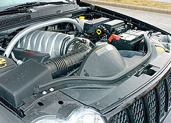 A Jeep Grand Cherokee SRT-8 (Street and Racing Technology – a gyár sportrészlegének rövidítése) motorja inkább a tegnap, mintsem a holnap jegyeit vonultatja fel, de azokat aztán annál meggyőzőbben. A 6,1 literes V8-as motor a legendás HEMI jelöléssel fut, azaz félgömb alakú égéstérrel rendelkezik, amit még az 50-es években szabadalmaztatott a gyár, s akkoriban mindenkit tönkre is vertek vele a versenypályákon. Azóta persze sokat fejlődött a motortervezés, ám abszolút teljesítmény tekintetében ma sem kell szégyenkeznie az erőforrásnak. A hengerenként kétszelepes szívómotor brutális, 570 Nm-es forgatónyomatékot villant, ha kell, ám hatalmas lökettérfogatának köszönhetően gyakorlatilag már az alapjáratról csomót köt a féltengelyekre. A hanghatás velőtrázó, mintha a Jurassic Park Dolby Surround változatát egy NASCAR-verseny közepette néznénk. Nagyjából ilyennek képzelem egy támadó T-Rex üvöltését…