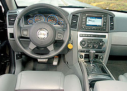 Amennyire brutálisan kemény autó kívülről, annyira puritán a belső tere – már-már túlzottan is. Tipikus amerikai belsejét rideg műanyagok uralják, ugyanakkor a motoros ülés és pedálhosszállítás, a tetőből lenyíló DVD-képernyő, valamint alumíniumbetétek és remek oldaltartású, szarvasbőr betétes sportülések jelzik, hogy mégiscsak a csúcsmodellben foglaltunk helyet. Az SRT-8-as valóban a Jeepek királyának tekinthető, ám messze áll attól a környezetbarát, kis fogyasztású és túlzásoktól mentes autósvilágtól, amely felé halad a globális autóipar. Ez egy csúcsragadozó, amelyet a maga nemében tökélyre fejlesztett a Jeep evolúciója, de a túléléshez szükséges alkalmazkodóképesség nélkül a biztos kimúlás vár rá. Sajnos…