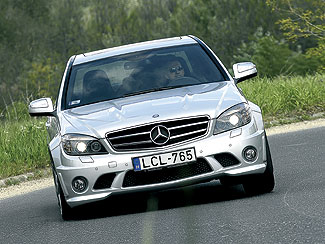 Nos, tesztünk főszereplője, a C 63 AMG jócskán kiemelkedik a középkategóriás szuperfegyverek mezőnyéből. A Mercedes gyári tuningcége bizony nem aprózta el a dolgot: fogták 6208 cm3-es sportmotorjukat, s belegyűrték a C-osztály orrába. A V8-as 457 lóerőt és 600 Nm forgatónyomatékot zúdít a hátsó kerekekre!