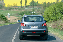 Komfortos autó a Qashqai, az elöl MacPherson, hátul több lengőkaros futómű ügyesen rugózza ki az úthibákat, csak dolgozhatna valamivel csendesebben. Sodrósan vett kanyarokban stabilan, átlagos karosszériadőléssel fordul az autó. Amennyiben tovább nyomjuk a gázpedált, az orra finoman kezdi elhagyni az ívet, viselkedése biztonságosan alulkormányzott. A fékekre is nyugodtan rábízhatjuk magunkat, erejük érzéssel adagolható, a lassulás pedig határozott.
