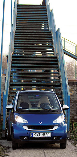 Hiába csak egy 2,7 méteres hosszúságú autót vezetünk, szervokormány nélkül (114 000 Ft) körülményes a parkolás, nehézkes a kormány tekergetése. A megállás sem az igazi, a fékpedált olyan erővel kell taposni, hogy belesajdul az ember vádlija. Nem olcsó mulatság a Smart, a tesztautó például hajszállal meghaladta a 3,9 millió forintot, de lássuk végre a fogyasztást! Klíma nélkül használva 5,75 l/100kilométeres átlagot produkált a 0,8 literes cdi, nyáron légkondival +1 litert még nyugodtan rátehetünk – most már nekem is inkább sírni támad kedvem: még hogy 3,3 liter!