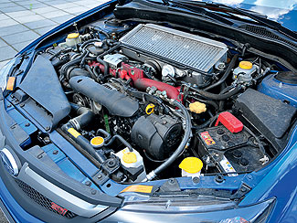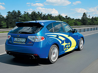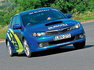Sharp (éles bevetés) állásban harap igazán a gép! Az első 3000 fordulat a vihar előtti csend jegyében telik, azután az Impreza begyújtja a rakétákat, s egy másik dimenzióba repíti utasait. Habozás nélkül ugrik a gázadásra, és szélsebesen pörög fel a 2,5 literes, turbófeltöltésű boxermotor. Teljesítményét 280-ról 300 lóerőre növelték, míg a maximális forgatónyomaték 392-ről 407 Nm-re emelkedett. Így az STi két tizedmásodperccel hamarabb, immár 5,2 másodperc alatt katapultál százra. A legszebb az egészben, hogy bármilyen talajon szemtelenül jól gyorsít, legyen az vizes aszfalt, murva, sár, esetleg hó. Ráadásul a szimmetrikus négykerékhajtás központi agyába is belepiszkálhatunk: a tengelyek közötti nyomatékelosztás az útfelületnek és a vezetési stílusnak megfelelően akár több lépésben is állítható az 50:50 és a 40:60 arány között. Laza és csúszós talajon előbbi a biztonságosabb, aszfalton viszont érdemesebb hátra csoportosítani a hajtóerőt, így kevésbé tolja az orrát, játékosabb a Subaru – már amennyiben kikapcsoltuk a menetstabilizáló rendszert, mert ellenkező esetben durván beavatkozik az elektronika.