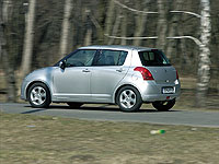Ennyi biztonsági berendezésnek – nem beszélve a merev utascelláról – már komoly súlya van, így nem véletlen, hogy a legkönnyebb Swift is 10 kiló híján egy tonnát nyom. Ez nagyjából két mázsával több, mint az elődmodell tömege, és ezt a súlyt éreztük is menet közben. A Swift ugyan még mindig vitán felül méltó a nevéhez (Swift, azaz fürge), ám az 1,5 literes, változó szelepvezérléssel is ellátott, 102 lóerős motor kis fordulaton nem igazán rugalmasan mozgatta a kocsitestet – igazán élvezetes autózást akkor kínált, ha folyamatosan 2500 felett tartottuk a fordulatszámot. Persze a gyakori sebességváltás nem bosszantó, mert a váltó könnyen és finoman mozog, az áttételek pedig jól eltaláltak. Az imént említett, megnövekedett tömegben egyébként alighanem van némi szerepe a profi zajszigetelésnek is, ugyanis kisautó-mércével mérve a Swift még a végsebesség közelében (185 km/óra) sem volt zajos. Az 1,5 literes motor minden fordulatszám-tartományban finoman és rezgésmentesen járt, átlagfogyasztása pedig – túlnyomórészt városi forgalomban – 7,2 liter volt, ami az autó tömegét és menetteljesítményét figyelembe véve jó érték. Az autó nagyobb tömege a rugózási komfortnak is jót tett: csak durvább kátyúkban éreztük úgy, hogy a hátsó futómű csillapíthatna lágyabban is. A sportos hangolás viszont sokkal többször okozott örömet, mert a Swift kifejezetten élvezetesen vezethető, nagyon stabil, már-már gokartszerű ívmenetet nyújt – igaz, ebben része volt annak is, hogy tesztautónk a nagyobb motorhoz és gazdagabb felszereltséghez dukáló 185/60 R15-ös kerekeken gurult.