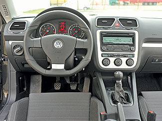A Scirocco először is szépségével nyűgözi le az embert. Akivel csak beszéltem, egyetértettünk abban, hogy ez az autó a Volkswagen egyik legszebb modellje, végre sikerült olyan kocsit tervezniük, ami a legtöbb modelljükkel ellentétben érzelmeket vált ki mindenkiből. Erre az elmúlt években – a Passat CC-t nem számítva – nem nagyon volt példa. Csak remélni tudjuk, hogy a Sciroccón használt stíluselemek, mint például az orrkialakítás, a különösen karakteres, krómozott világítótestek, a fényszóróházak fényes fekete belső felületei, amelyeket a hűtőrács ugyancsak feketén fénylő, karcsú csíkja köt össze, a Volkswagen megújulását vetítik előre. Igazán eltaláltak az autó arányai, rövidek a túlnyúlások, hosszú a tetőív, meredeken áll a hátsó ablak, lapos és széles a karosszéria – tipikus sportkocsis jegyek. Az egyéni sziluett azonban nem hivalkodó, egyszerűen szép. Ez az első benyomásunk akkor is, ha beülünk az autóba. Letisztult, az Eosból ismerős vonalak, a VW-nél megszokott kezelőszervek, jó ergonómia. Az összeszerelés minőségére és az anyagválasztásra sem lehet panasz, csakúgy, mint a legtöbb wolfsburgi márkatárs, hozza az elvárt szintet. Kár, hogy a színek miatt a hangulat komor, azonban elindulás után ezt könnyen felejteni tudjuk. Kritika illeti a tükörállító gombokat, melyekhez a nagyon látványos „TT-coupés” ajtóbehúzó fogantyútól nem lehet hozzáférni.