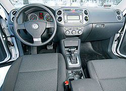 A VW megosztó márka. Akik esküsznek rá, örömmel konstatálják, hogy a Tiguanban is minőségiek az anyagok, makulátlan a kidolgozás, precízen működik minden, egyszerű és ösztönszerű a kezelés. Akik nem szeretik, továbbra is fintoroghatnak a mindenkinek megfelelni akaró, ezért senkit sem elragadó formaterv, a kissé irodahangulatú, kevéssé lakályos hangulatú utastér és az ízlésficamos, kék világítású, piros mutatójú műszerek miatt. Én mindkét féllel egyetértek. Nem egyedül a VW bűne, hanem sajnos világjelenség, hogy a design többet számít a praktikumnál: a Tiguanon is vannak kilátásra alkalmatlan, de súlynövelő ablakok, és butuska, öncélú játszadozásnak tartom, hogy a tolatólámpa nem a hátsó világítóegység fehér burájú középrészéből világít, hanem keskeny kis fényrésként, a lökhárító fölött. A fényszóró és a ködlámpa viszont pompás. A poggyászteret nyugodtan szabhatták volna nagyobbra. Még úgy sem igazán elegendő négy személy kalandkirándulásos cuccának (hiszen erre való ez a kocsi, ugyebár?), hogy csak mankókerék van alatta – azt nem szívesen próbáltam volna ki az idei télben!