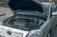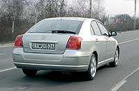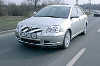 Kategória Középkategória, D szegmens. Felépítés Ötajtós, ötszemélyes, önhordó acélkarosszéria, ferdehátú építésmód. Motor Elöl keresztben beépített, négyhengeres, tizenhat szelepes, VVT-i változó szelepvezérlésű, folyadékhűtéses, közvetlen benzinbefecskendezésű motor, két felülfekvő vezérműtengellyel, változó szívócsőhossz. Furat × löket: 88,5 × 96,0 mm Összlökettérfogat: 2362 cm3 Sűrítési arány: 11,0:1 Max. teljesítmény: 120 kW (163 LE) 5800/min Max. forgatónyomaték: 230 Nm 3800/min Erőátvitel Ötfokozatú, automatikus, szekvenciálisan is kapcsolható váltómű, elsőkerék-hajtás. Futómű Elöl MacPherson rendszerű kerékfelfüggesztés, csavarrugókkal, gáztöltésű lengéscsillapítókkal. Hátul kettős keresztlengőkaros kerékfelfüggesztés, csavarrugókkal, gáztöltésű lengéscsillapítókkal. Elöl-hátul kanyarstabilizátor. Kormánymű Fogasléces, hidraulikus szervokormány, ütközéstől ütközésig 3,0 fordulat. Fékrendszer Elöl 295 mm átmérőjű, hűtött tárcsafék, hátul 280 mm átmérőjű, tömör tárcsafék. Szériafelszerelés a blokkolás- és a kipörgésgátló, az elektronikus fékerőelosztás, a vészfékasszisztens és a menetstabilizáló rendszer. Méretek, tömegek Hosszúság/szélesség/magasság: 4630/1760/1480 mm Tengelytáv: 2700 mm Nyomtáv elöl/hátul: 1505/1510 mm Fordulókör átmérője: 11,2 m Keréktárcsa mérete: 6,5 × 16 Gumiabroncs mérete: 205/55 R 16 Csomagtér: 510/1320 l Üzemanyagtank: 60 l Saját tömeg: 1425 kg Megengedett össztömeg: 1905 kg Terhelhetőség: 480 kg Gyorsulás 0-100 km/h: 9,1 s Gyorsulás 0-400 m: 16,5 s Max. sebesség: 220 km/h Fogyasztás városban/országúton: 13,5/7,2 l/100 km Tesztfogyasztás: 10,28 l/100 km Hatótávolság: kb. 583 km A tesztút hossza: 17 720 km A Toyota Avensis alapárai: 1.6 VVT-i Sedan (110 LE) – 5 235 000 Ft 1.8 VVT-i Sedan (129 LE) – 5 535 000 Ft 2.0 D-4D Sedan (116 LE) – 6 095 000 Ft 2.0 VVT-i Sol Technic Sedan (147 LE) – 6 625 000 Ft 2.4 VVT-i Sol Elegant Sedan (163 LE) – 7 845 000 Ft A tesztelt modell ára: 8 975 000 Ft Gazdasági adatok Garancia: 3 év vagy 100 ezer kilométer teljes körű garancia. Előírt karbantartás: 15 000 km-enként vagy 12 havonta. Átlagos használat esetén (1 év = 15 000 km, 5 év = 75 000 km): 15 000 km-nél: 15 393 Ft 30 000 km-nél: 28 568 Ft 45 000 km-nél: 15 393 Ft 60 000 km-nél: 32 027 Ft 75 000 km-nél: 15 393 Ft Gumiabroncs mérete és típusa: 205/55 R 16 V (Bridgestone) Gumiabroncs ajánlott fogyasztói ára: 45 975 Ft/db Kötelező biztosítás éves díja: 39 414 (50 év feletti vidéki magánszemély) – 219 684 Ft (22 évnél fiatalabb budapesti magánszemély) Casco biztosítás éves díja: 94 249 (30 %, vagy min. 456 000 Ft önrész) – 551 004 Ft (10 %, vagy min. 42 000 Ft önrész) Alkatrészárak: féktárcsa: 13 002 Ft + áfa/db fékbetét: 17 799 Ft + áfa/garnitúra szélvédő: 65 536 Ft + áfa motorháztető: 74 084 Ft + áfa keréktárcsa alu.: 68 184 Ft + áfa/db külső tükör: 45 385 Ft + áfa/db első lökhárító: 52 592 Ft + áfa A tesztautó szállítója: Toyota Motor Hungary, 1211 Budapest, Szabadkikötő u. 4. Telefon: 06-1-278-1600.
