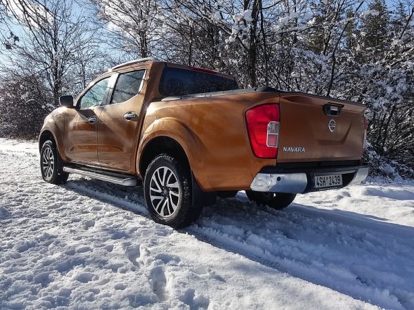 A Navara erősebb, 190 lóerős változatával a szokásosnál hosszabb ideig ismerkedhettünk. Társunk volt valódi anyagmozgatásban, zord téli napokon és maratoni autópályás szakaszokon is. Az Iveco és a Renault több haszongépjárművében már bizonyított 2,3 literes biturbó-dízelmotor úgy 80-90 km/órás tempóig furgonos kelepeléssel jár, majd a gumiabroncsok gördülési zaja és a homlokfelület, illetve a nagy külső tükrök keltette szélzaj tompít rajta valamelyest. Az utaskabin zajszigetelése egyébiránt hatékony, 110-130 órás sebesség hosszú távon sem terheli a fülünket, a 8,1 literes tesztfogyasztás okán pedig a hatótáv is rendben van.