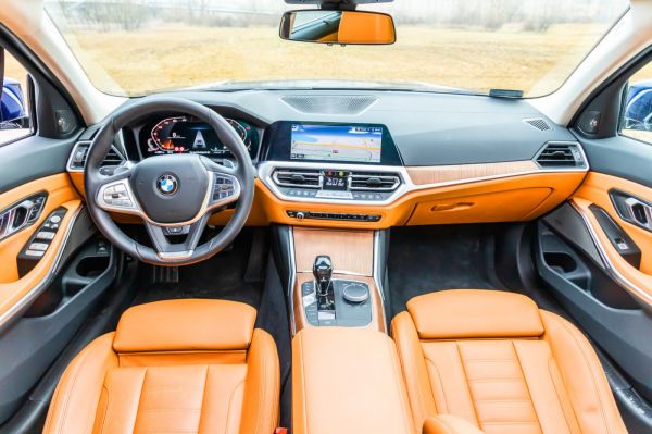 Kicsit kontrasztos volt azonban a 13 705 000 forintos listaárú tesztjármű konfigurációja, hiszen talán a Luxury Line dizájnvilága passzol a legkevésbé a 3-as kombihoz. A 17 colos kerekek vastag oldalfalú abroncsai és a kasztni krómdíszei nem igazán attraktívak, belül pedig a bézs kárpitozás üt el a modell sportos szellemiségétől, ráadásként pedig famintázat, matt alubetét és kétféle színtónusú műanyag is megjelenik. Erre mondják, hogy a kevesebb több lett volna, viszont rögvest igazolja is a konfigurációban rejlő szabadságot – akinek ez tetszik, megkaphatja.