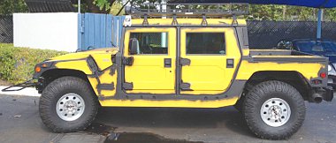 Az autófóliázás lényege az, hogy úgy kap új színt a karosszéria, hogy azt bármikor vissza lehet változtatni az eredetire. Nos, ennél a gyárilag kanárisárga Hummer H1-esnél ez már nem mondható el, a fóliázást végző vállalkozó ugyanis a peremeknél egyszerűen mattfekete sprével lefújta a lemezeket.